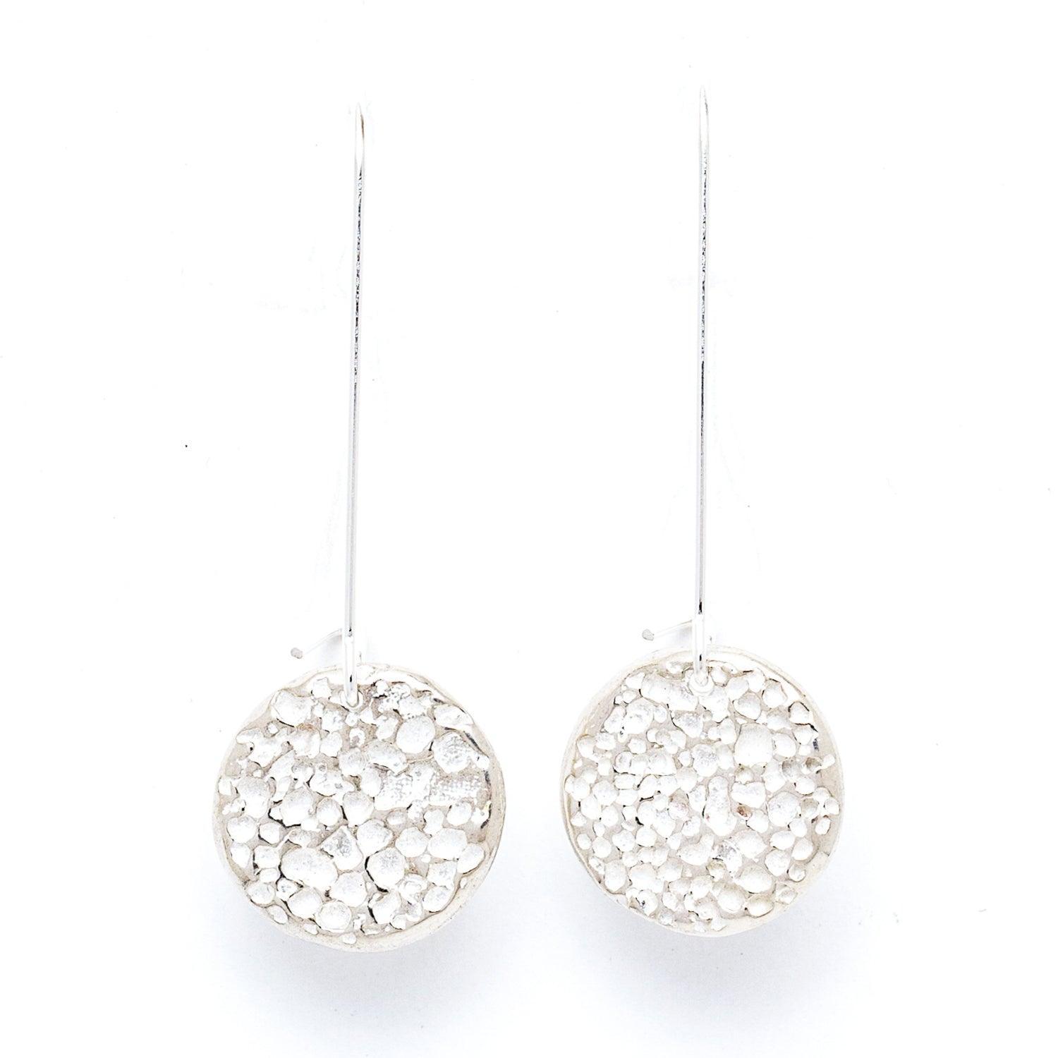 Cast from real Hawaiian lava rock, these disc-shaped earrings are a favourite amongst our lava rock pieces. Choose your preferred length with either a long or short earring hook.