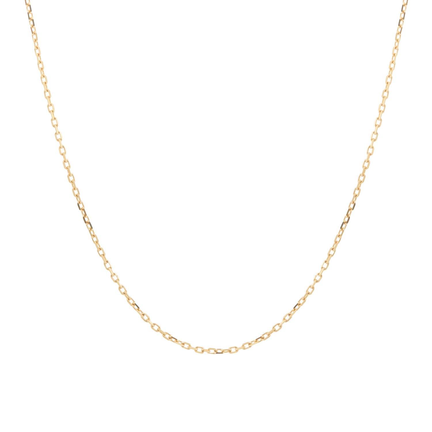 A delicate .9mm chain in 14k yellow gold with fine chain links to give it a shimmer and subtle texture.
