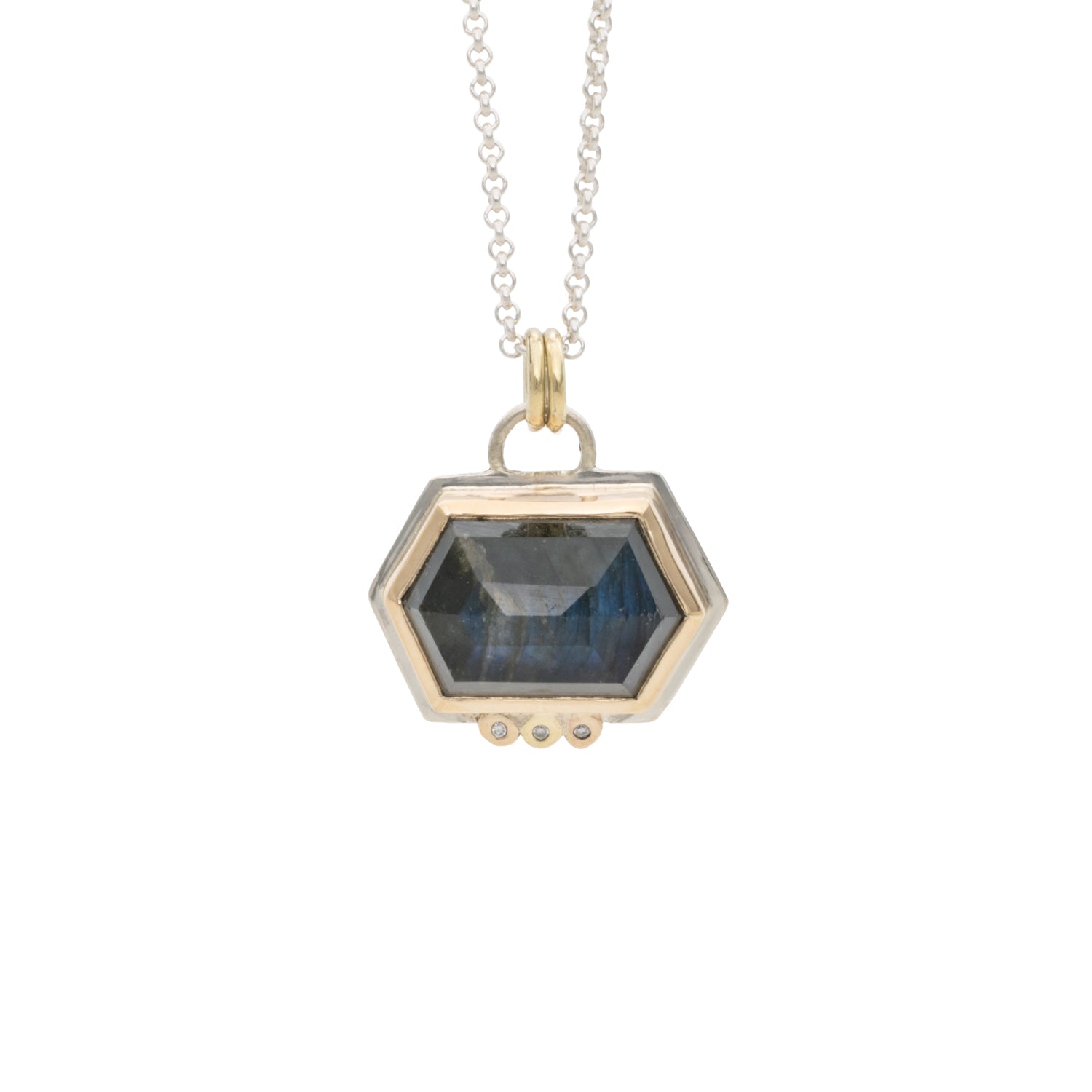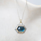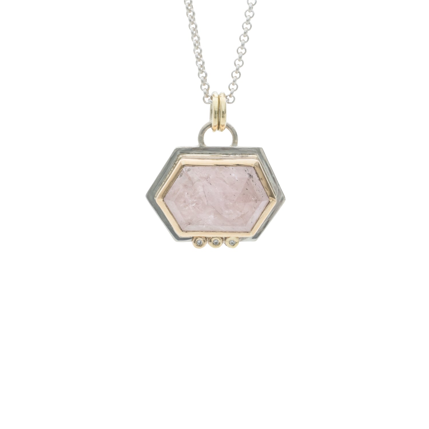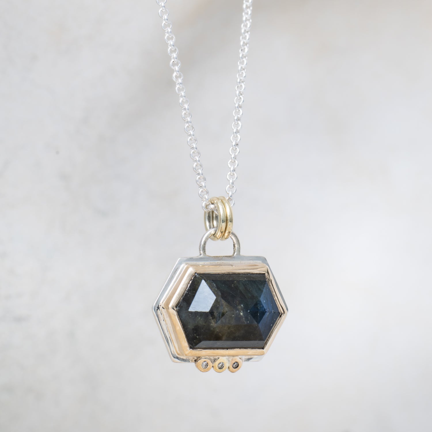 One of a kind rose cut gemstones with diamond accents.  Set in 14k gold with a sterling silver back plate, this pendant is a dream come true.