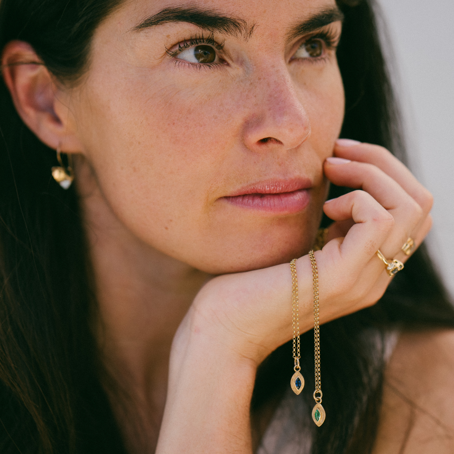 Kat Cadegan’s Gold Pendants are more than just accessories—they’re wearable art that tells a story. Inspired by nature, architecture, and global cultures, each pendant is designed to blend timeless beauty with contemporary aesthetics. From the sleek lines of the Ajna Pendant to the organic shapes of the Hemlock Cone Pendant, these pieces are perfect for everyday wear or special occasions.