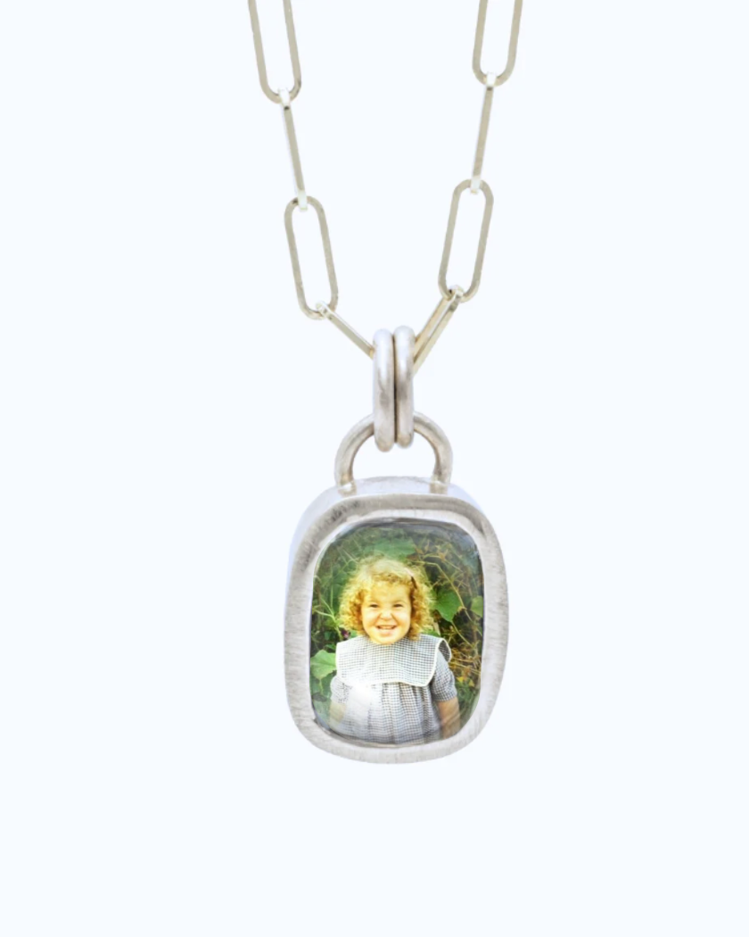A contemporary take on the classic portrait pendant.