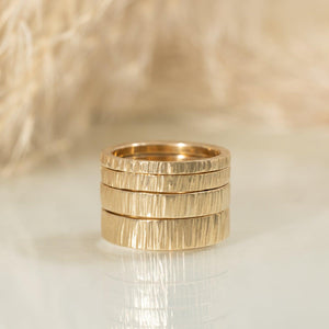 A modern take on a classic bar band, our 4mm wedding band is made from recycled gold.